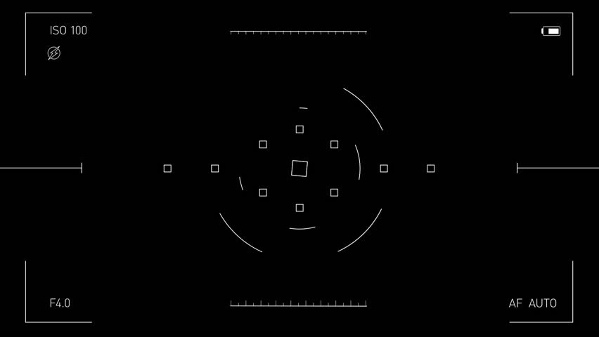 Camera viewfinder overlay with detailed UI elements and tracking focus. Grid lines, cinematic interface, camera focus, high-tech HUD, digital overlay, futuristic UI, lens effects, photography screen.
